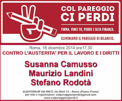 Col pareggio ci perdi! Firma e fai firmare la legge di iniziativa popolare per eliminare il pareggio di bilancio dalla Costituzione