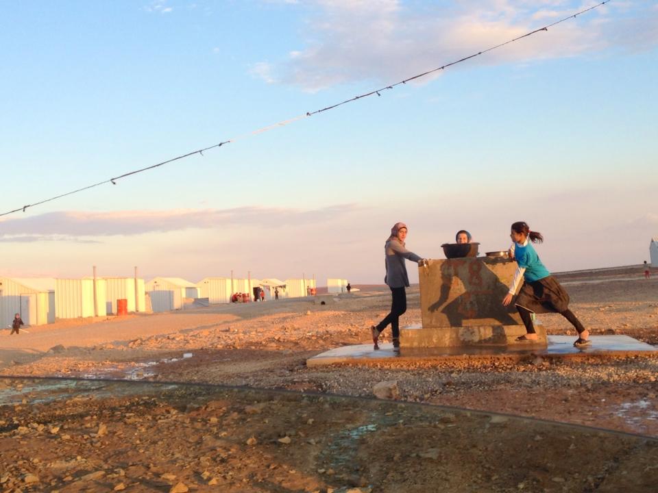 La prima cosa che vedi prima di arrivare ad Azraq sono gli aquiloni dei bambini che volano in mezzo al deserto. Non sono colorati come li immaginiamo noi, sono scuri, costruiti con pezzi di plastica raccattata qua e là. Azraq è un campo profughi dell’UNHCR a 50 km dal confine siriano della Giordania ed a 150 da quello Iracheno; ospita quasi 15mila rifugiati siriani e di questi il 55% sono bambini.