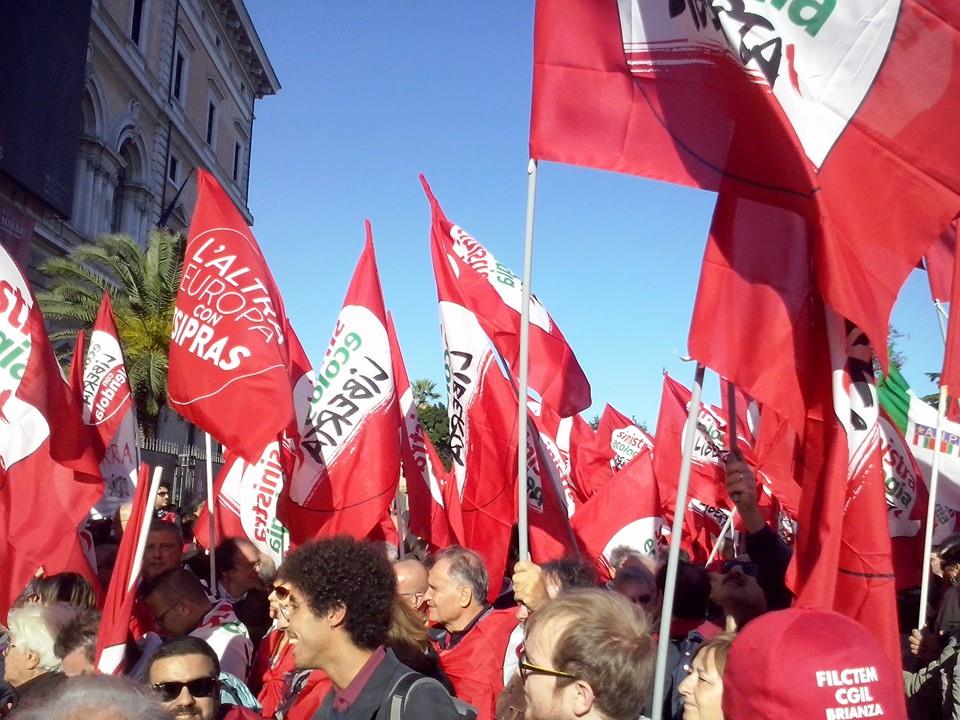 Tante le bandiere di Sinistra Ecologia Libertà. Uno spezzone del corteo con Nichi Vendola, Nicola Fratoianni e tutti i parlamentari di Sel. Ma tante anche le bandiere di Sel presenti nelle rappresentanze regionali.